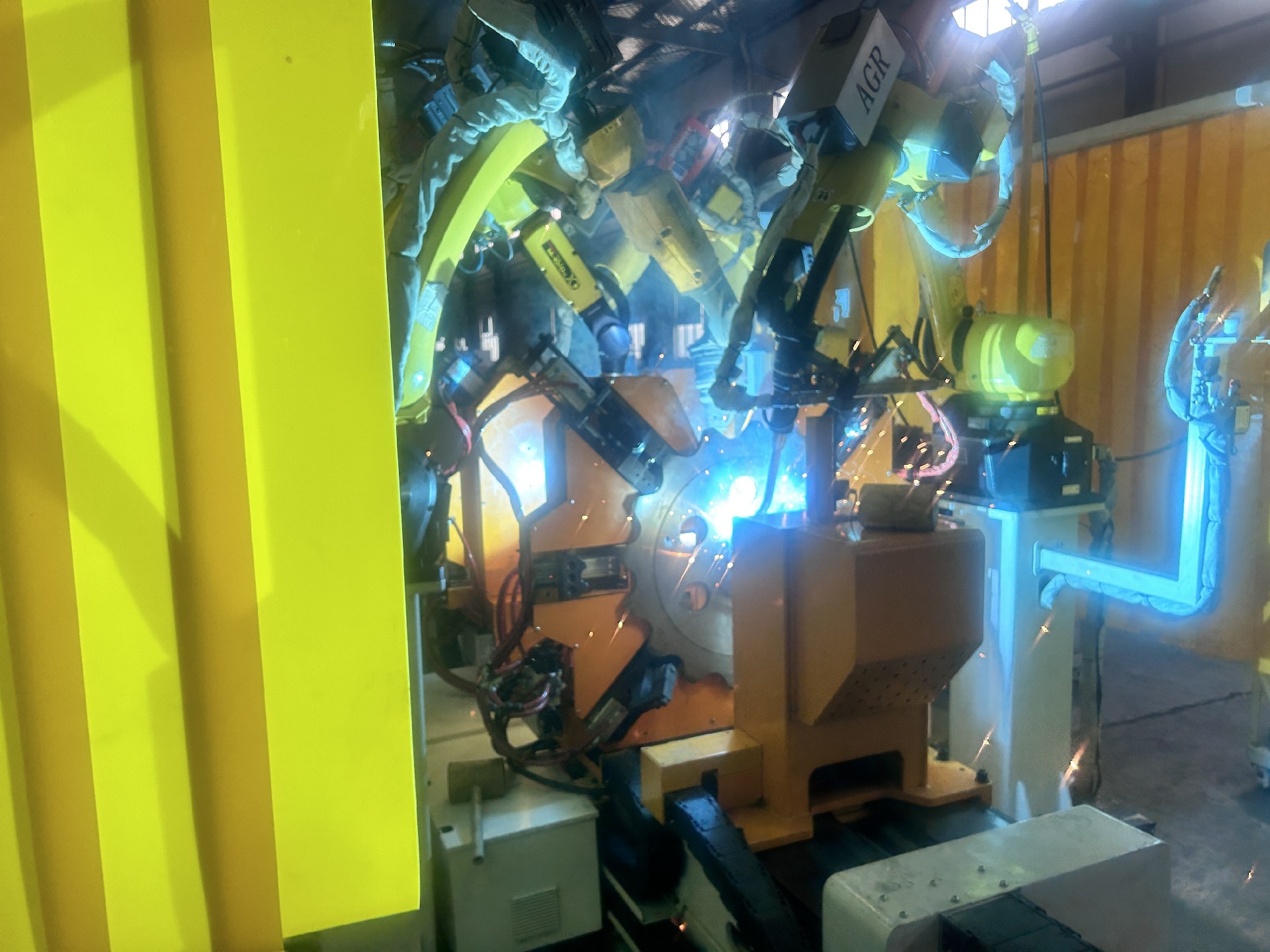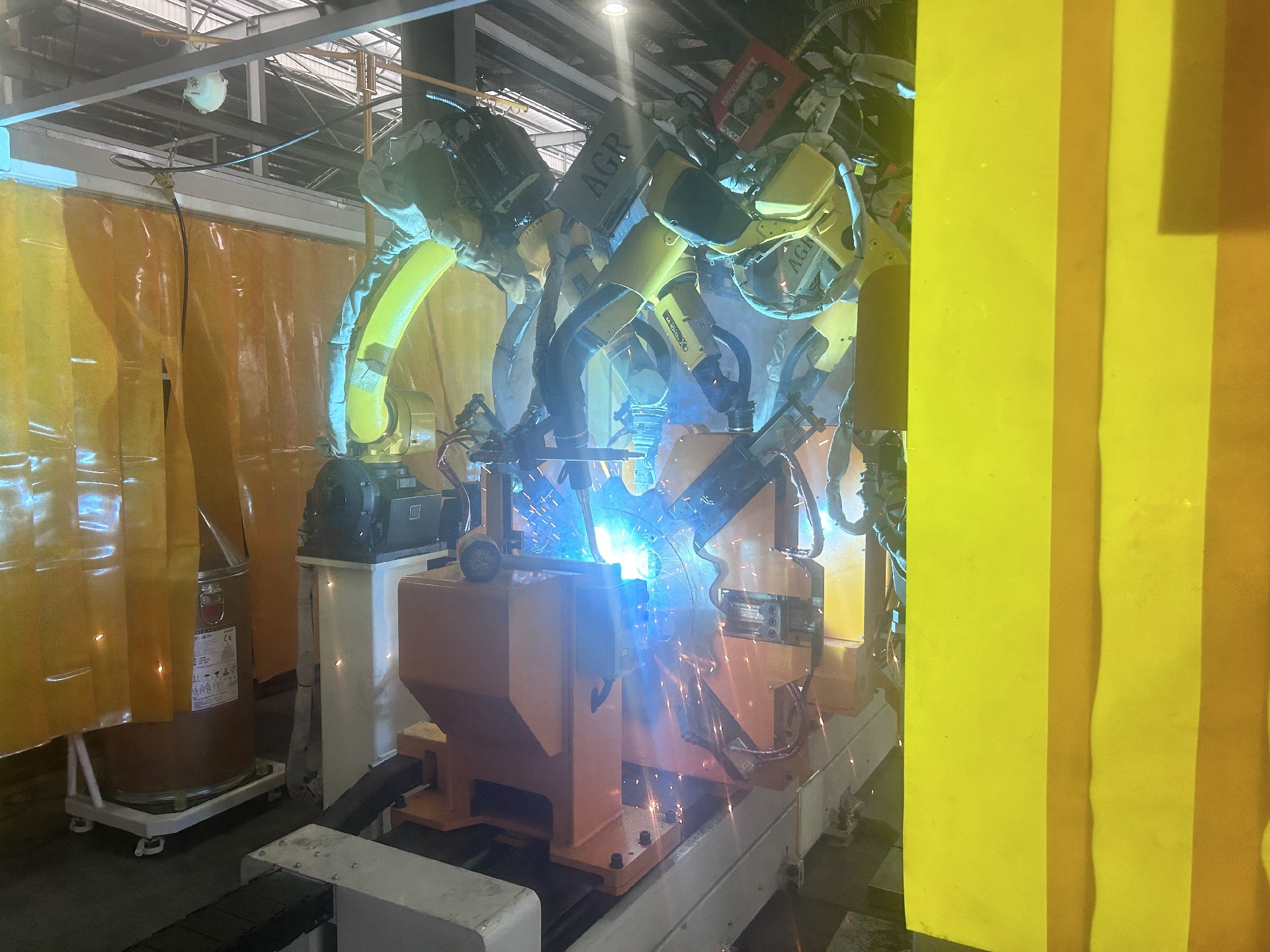(3)焊接位配置四臺機器人,其中兩臺負責烤火預熱,全部四臺兼責點焊與焊接工作。