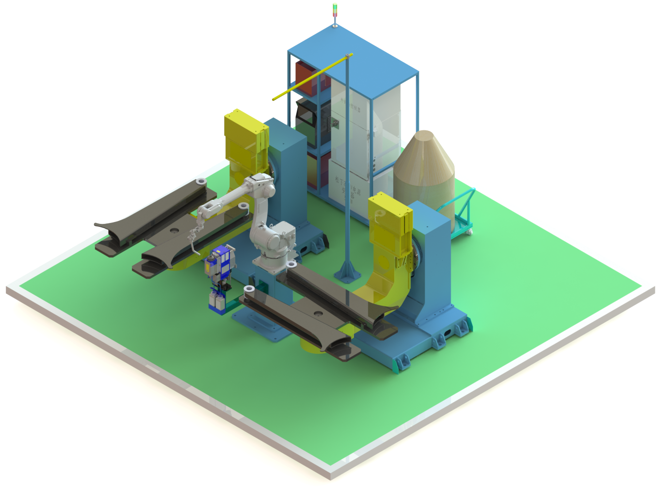 ?多功能適應:夾具設計考慮了多種型號工件的通用性,能夠適應不同規(guī)格和形狀的推土鏟刀,提高了工作站的柔性。