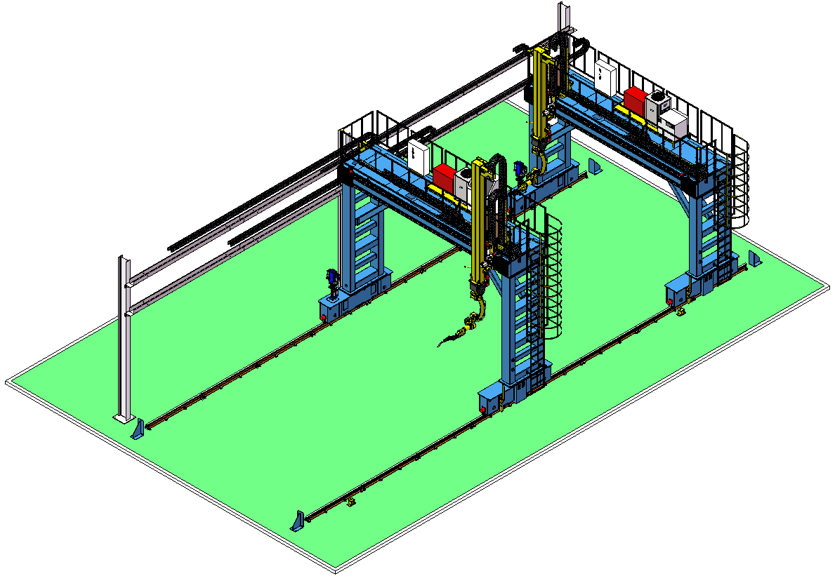 5機(jī)聯(lián)動(dòng)機(jī)器人焊接系統(tǒng);變位機(jī)承載能力達(dá)到1噸,適用于多型號(hào)動(dòng)臂斗桿結(jié)構(gòu)件的焊接;反變形及夾緊定位一體化設(shè)計(jì)伺服夾具,與工件自 動(dòng)化柔性輸送系統(tǒng)配合,可實(shí)現(xiàn)多種型號(hào)工件的自動(dòng)裝夾。